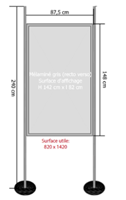 Posters must fit within 84 cm x 142 cm (see image below) and will be mounted by double-sided stickers, which will be supplied.